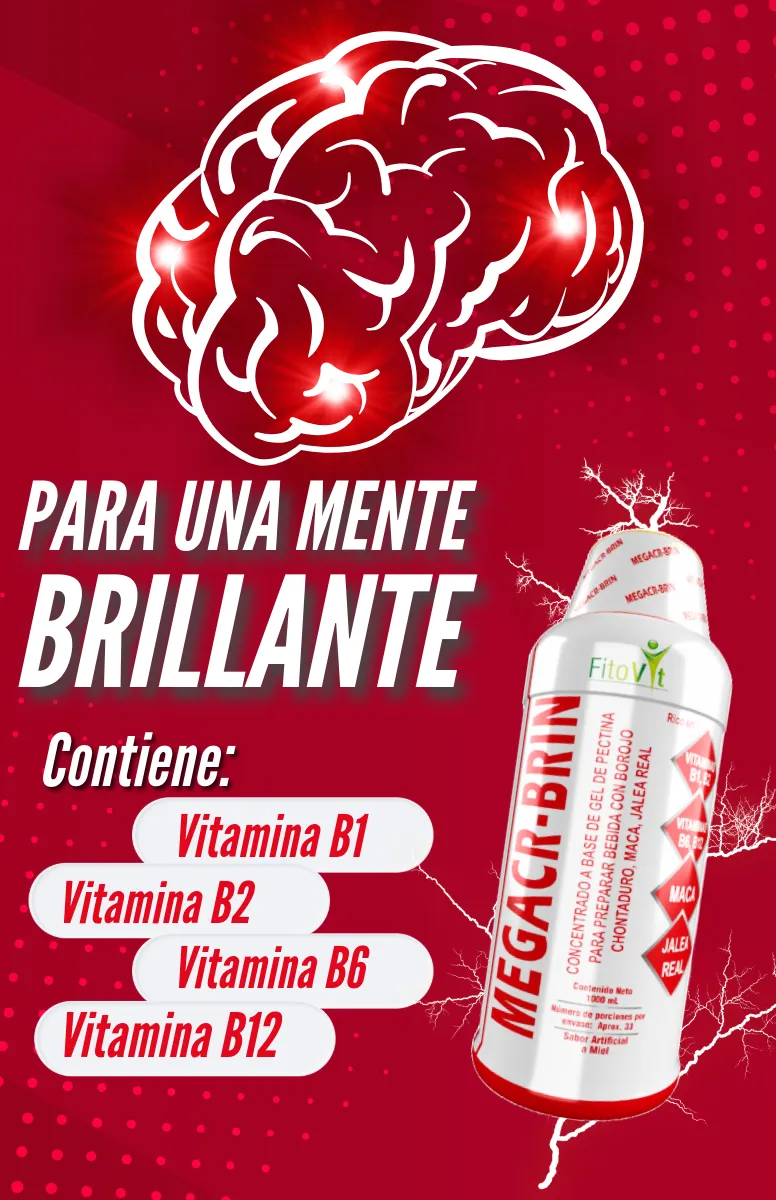 Megacr-Brin es un concentrado en gel a base de pectina que combina borojó, chontaduro, maca y jalea real con vitaminas y minerales esenciales. Su fórmula está diseñada para aumentar la energía, fortalecer el sistema inmunológico y mejorar el rendimiento físico y mental.